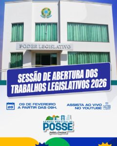 A Câmara de vereadores de Posse convida a população para participar da Sessão de Abertura dos Trabalhos Legislativos de…
