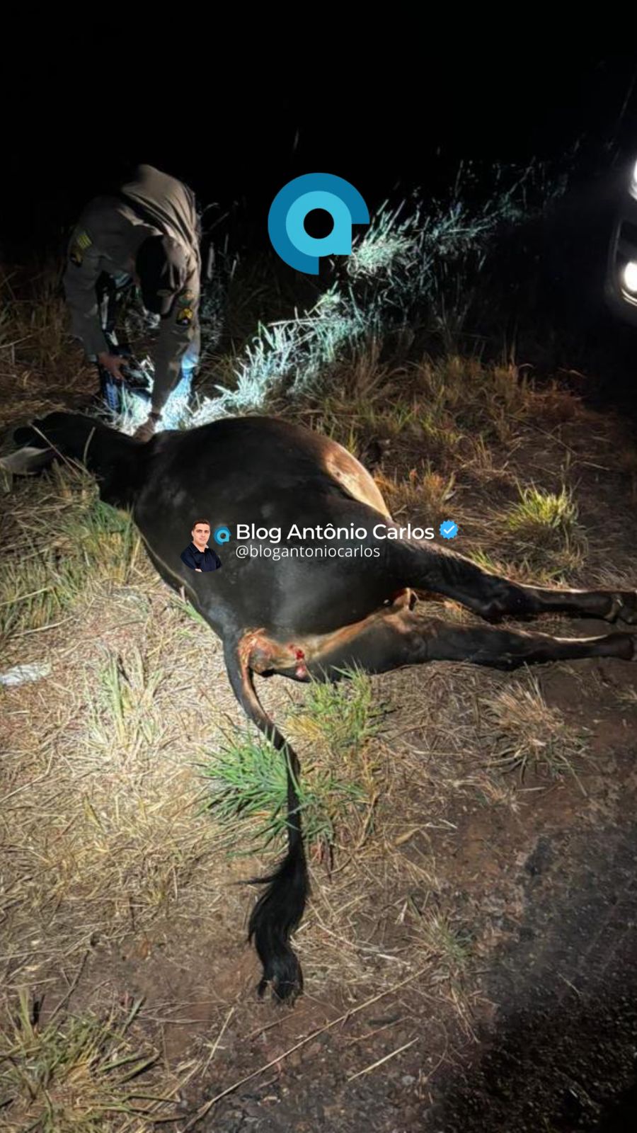 O animal atropelado possuía marcação, mas a identificação estava dificultada, possivelmente devido ao impacto ou à má visibilidade.