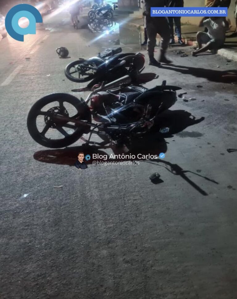 Um acidente de trânsito envolvendo duas motocicletas foi registrado na Avenida 21 de Abril, em Iaciara (GO), nesta terça-feira (20).