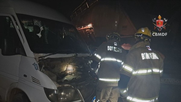 Um acidente entre uma van e uma carreta deixou nove pessoas feridas na BR-020, no Distrito Federal, na noite de terça-feira (24).