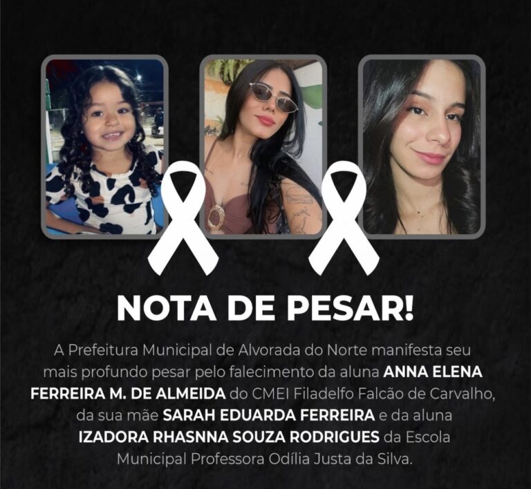 A Prefeitura de Alvorada do Norte (GO) divulgou uma nota de pesar informando a identificação de três das cinco vítimas que morreram no grave acidente registrado na manhã deste domingo (21/12), na BR-020, no km 175, na zona rural do município.