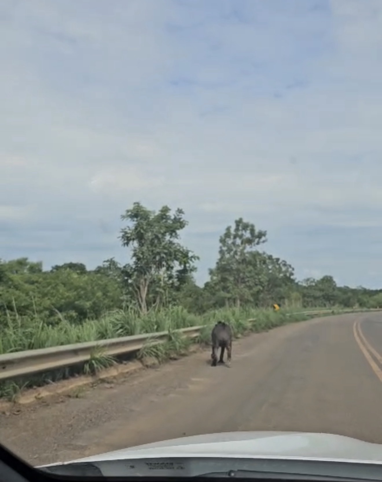 No vídeo, o motorista mostra a anta andando à margem da pista e afirma que seguiu lentamente atrás do animal para impedir que outros veículos se aproximassem. “Vou tocar para nenhum carro atingir ela”, diz durante a gravação.