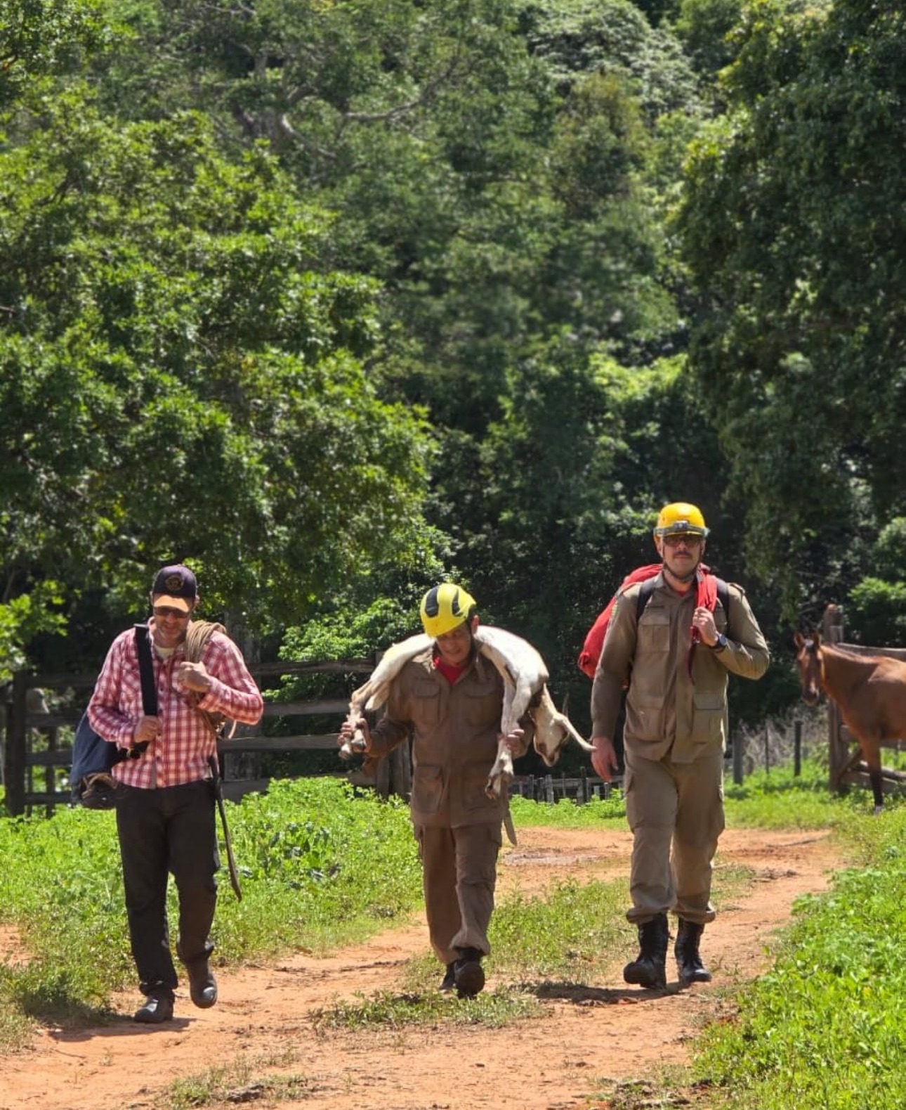 De acordo com as informações repassadas à corporação, um guia do parque vinha escutando os berros do animal há cerca de cinco dias. Durante uma caminhada pela região, ele conseguiu localizar o bode preso em um ponto de difícil acesso, em meio a um despenhadeiro íngreme.