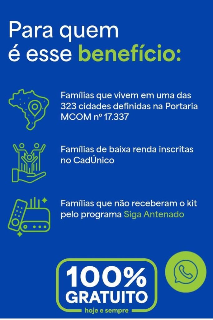 Famílias de baixa renda inscritas no Cadastro Único (CadÚnico) em municípios do Nordeste Goiano poderão receber gratuitamente o kit da nova parabólica digital por meio do programa Brasil Antenado. A nova etapa tem previsão de início em 12 de janeiro de 2025.