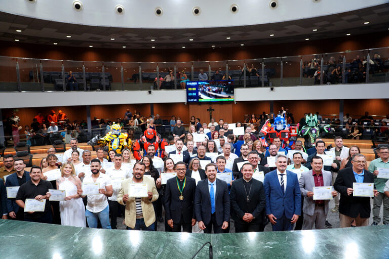 A Assembleia Legislativa de Goiás (Alego) realizou na noite dessa segunda-feira, 8, por iniciativa do presidente da Casa, deputado Bruno Peixoto (UB), sessão especial de homenagem a empresários da região Norte do Estado. Na oportunidade, foi entregue o Certificado do Mérito Legislativo e Medalha do Mérito Pedro Ludovico Teixeira a vários integrantes da categoria.