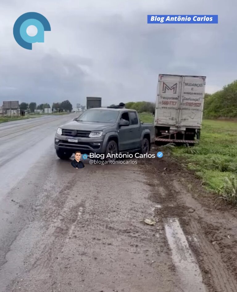 Enquanto o veículo permanecia preso, um morador de Posse (GO) que passava pela região decidiu ajudar. Ele utilizou sua caminhonete Amarok V6 para realizar o resgate e conseguiu retirar o caminhão-baú do atoleiro. A ação foi rápida e chamou a atenção de outros motoristas que transitavam pelo trecho.