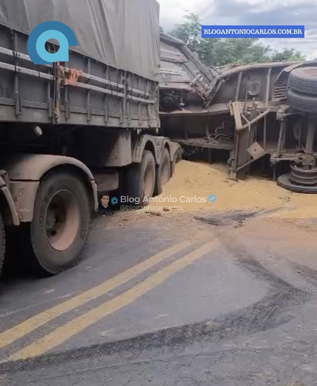 Uma carreta carregada com grãos tombou na rodovia GO-236, no município de Mambaí, no nordeste goiano, e provocou a interdição parcial da via, na tarde desta terça-feira (17/03.