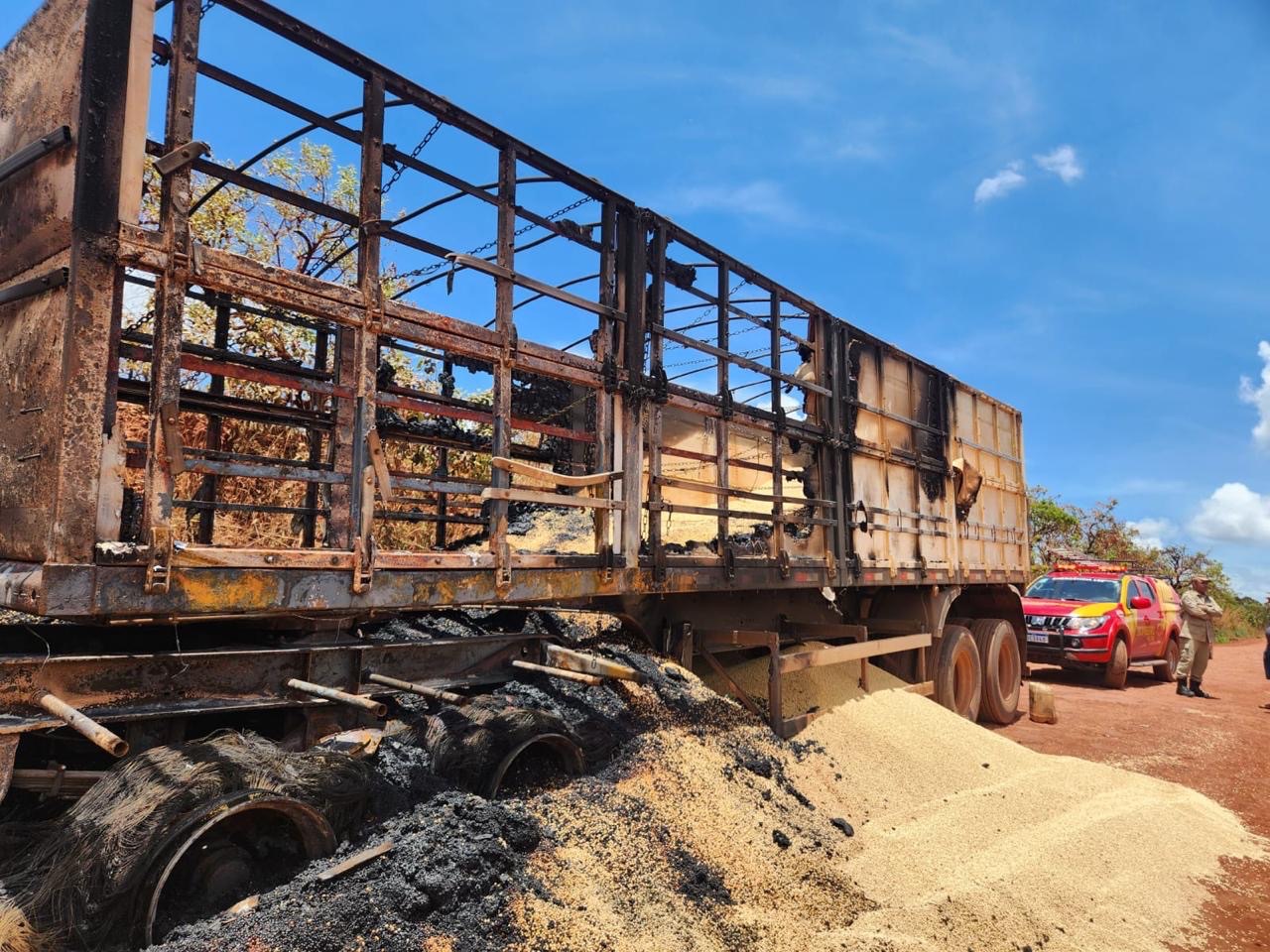 Na manhã desta terça-feira (02/12), o motorista acionou o Corpo de Bombeiros Militar de Posse para registrar oficialmente a ocorrência e garantir a formalização do ocorrido. Quando a equipe chegou ao local, o incêndio já estava extinto, restando apenas os vestígios do fogo, a carga derramada e a carroceria danificada.