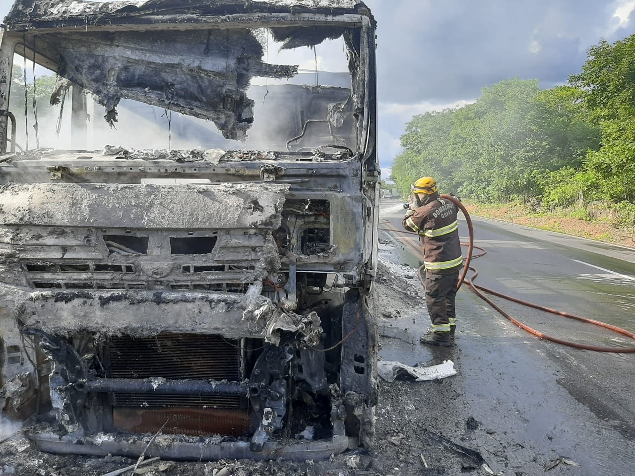 No local, a guarnição utilizou técnicas de combate direto ao fogo para controlar as chamas e, em seguida, realizou o trabalho de rescaldo. Apesar da intensidade do incêndio, parte da carga que estava na porção traseira do veículo conseguiu ser preservada, o que ajudou a reduzir os prejuízos materiais e os riscos à segurança da rodovia.