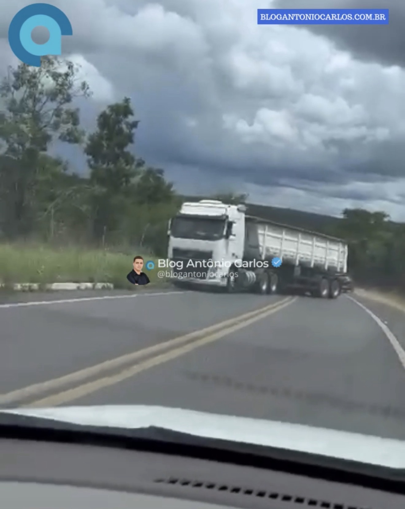 Para evitar um acidente de maiores proporções, o condutor realizou uma manobra de emergência, fazendo o chamado “L” com a carreta. O veículo ficou atravessado parcialmente na pista, reduzindo o espaço de passagem e provocando lentidão no tráfego, mas sem interdição total da rodovia.
