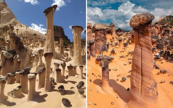 De acordo com a geóloga Joana Paula Sánchez, o processo de formação ocorre por erosão diferencial com camadas mais frágeis de rocha na base vão sendo desgastadas pela ação da água, enquanto a parte superior, formada por material mais resistente, funciona como um “chapéu”, protegendo a estrutura e permitindo que ela permaneça de pé.