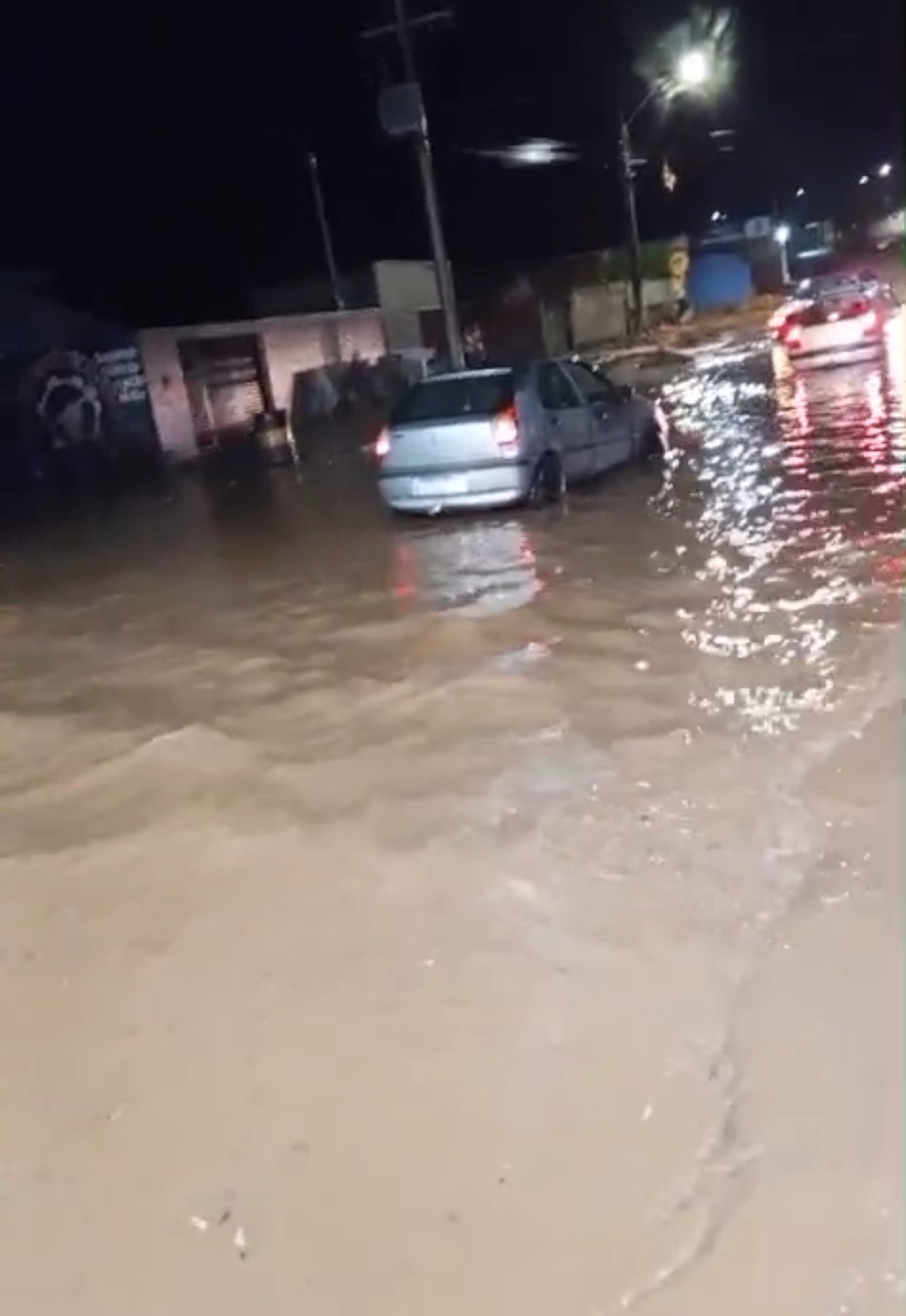 Moradores registraram vídeos mostrando a força da chuva e os danos provocados. A situação reacende o debate sobre os antigos problemas de drenagem e infraestrutura da cidade, que se repetem a cada período chuvoso.