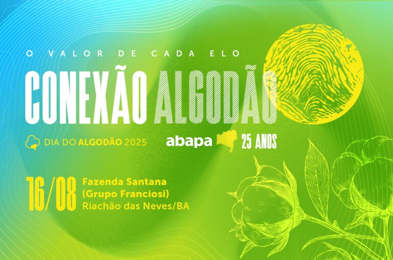 No próximo dia 16 de agosto, a Associação Baiana dos Produtores de Algodão (Abapa) realizará a quarta edição do seu Dia do Algodão. O evento, um dos mais concorridos da cadeia produtiva da fibra no Brasil, este ano integra o calendário de celebrações pelos 25 anos da entidade, completados em maio. O Dia do Algodão da Abapa segue indo além do formato tradicional – de dia de campo técnico –, para discutir os rumos da cotonicultura baiana, brasileira e mundial, sob um variado prisma temático, que vai desde inovação e sustentabilidade, até a conexão com o futuro.