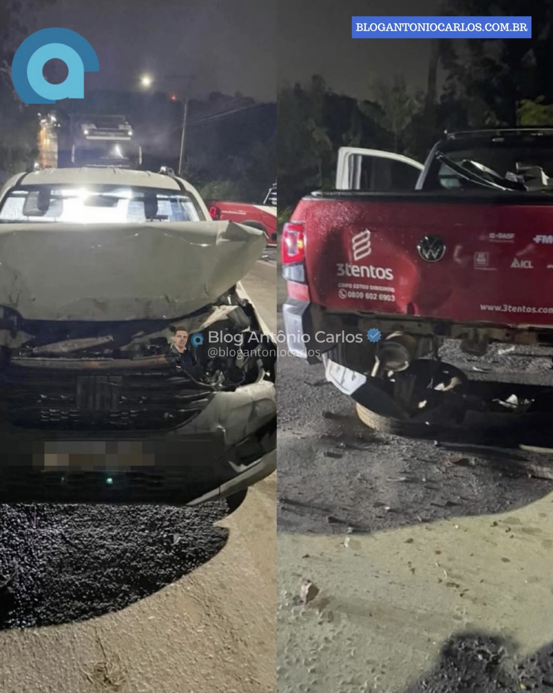 De acordo com as informações, o sinistro ocorreu quando uma VW Saveiro Robust, que seguia à frente, reduziu a velocidade ao se aproximar de uma lombada instalada na rodovia. O veículo que vinha logo atrás, uma Fiat Strada, não conseguiu frear a tempo e acabou colidindo na parte traseira da Saveiro.