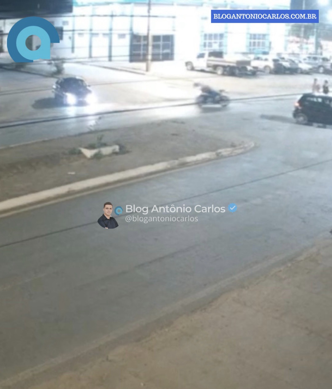 Um motociclista caiu na Avenida JK, em Posse (GO). O momento foi registrado por uma câmera de monitoramento de segurança instalada em um prédio nas proximidades.