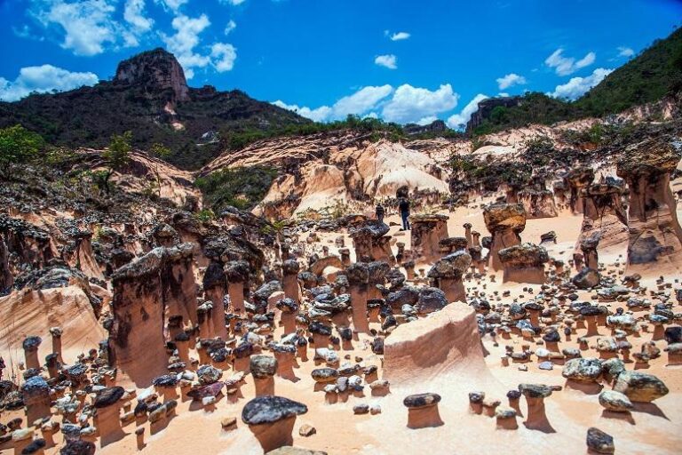Um dos cenários naturais mais surpreendentes do Brasil acaba de ser revelado ao grande público: o Vale de Marte, localizado em uma propriedade rural no município de Campos Belos, no Nordeste Goiano. O local abriga a maior concentração já registrada no país de chaminés de fada — formações geológicas raras esculpidas pela ação da erosão fluvial ao longo de centenas de anos. Mas junto com a fama repentina, cresce também a preocupação com a fragilidade desse patrimônio natural.