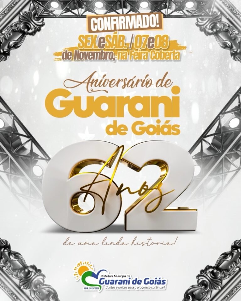 O município de Guarani de Goiás se prepara para comemorar 62 anos de emancipação política, celebrando mais de seis décadas de história, conquistas e amor pela terra.