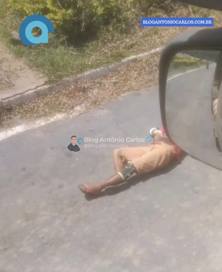 Um homem foi flagrado deitado no meio da pista da GO-236, no perímetro urbano de Buritinópolis (GO), em uma situação que chamou a atenção de motoristas que passavam pelo local.