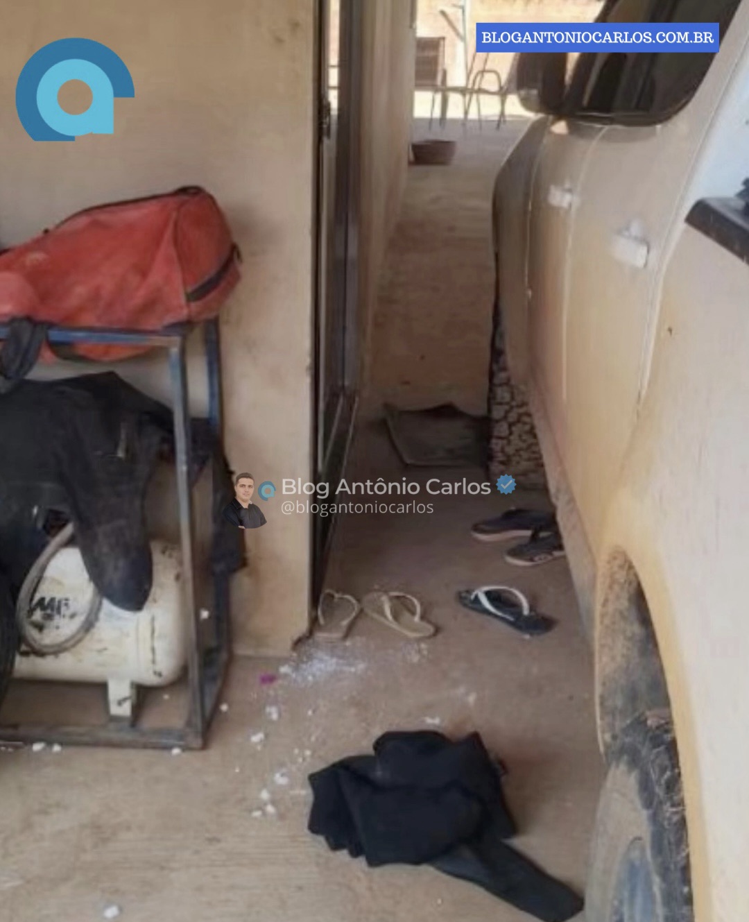 Ao entrarem no imóvel, os policiais identificaram vestígios de sangue que começavam em um dos quartos. A porta do cômodo estava fechada e apresentava resistência para abertura. Pela fresta e, posteriormente, por uma janela lateral, os militares visualizaram um corpo caído ao chão, atrás da porta, em meio a grande quantidade de sangue. Sobre a cama, foi localizada uma arma de fogo de cano longo.
