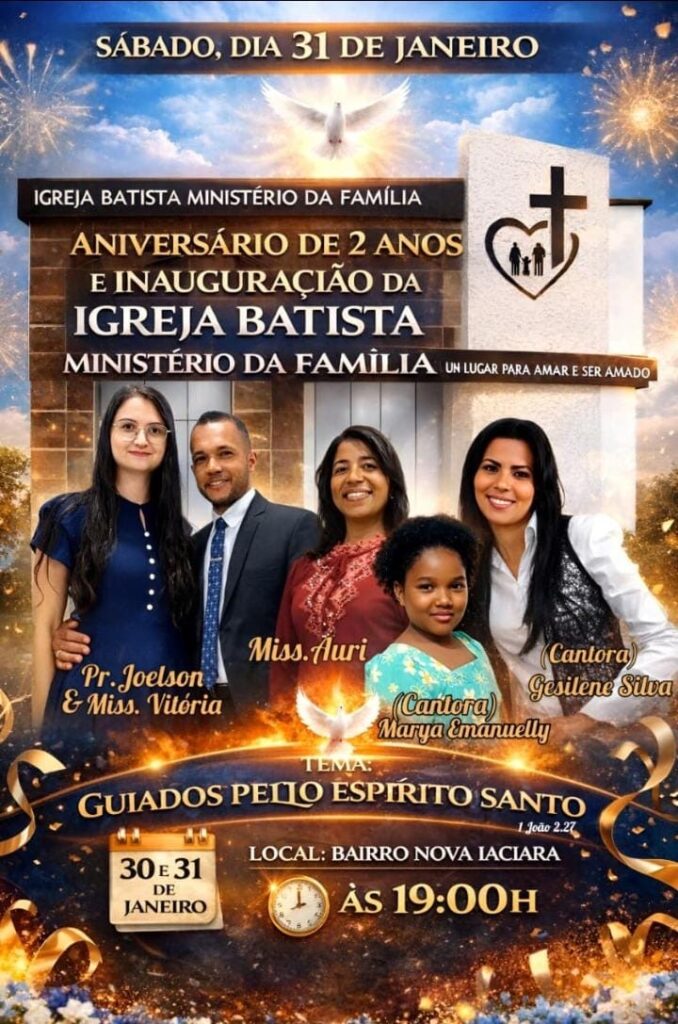 A cidade de Iaciara (GO) vive a expectativa pela inauguração da Igreja Batista – Ministério da Família, marcada para o próximo dia 30 de janeiro. O momento representa a realização de um sonho construído com fé, união e esforço da comunidade local.