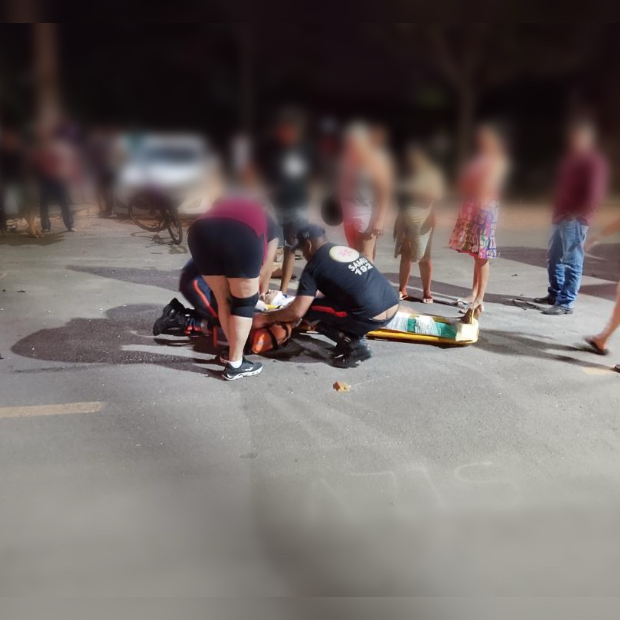 Um acidente envolvendo um GM/Onix e uma motocicleta deixou um homem ferido no fim da tarde de quinta-feira (20), na Avenida Bahia, em São Domingos (GO). O Serviço de Atendimento Móvel de Urgência (SAMU) foi acionado e prestou socorro ao motociclista, que caiu ao solo após a batida.