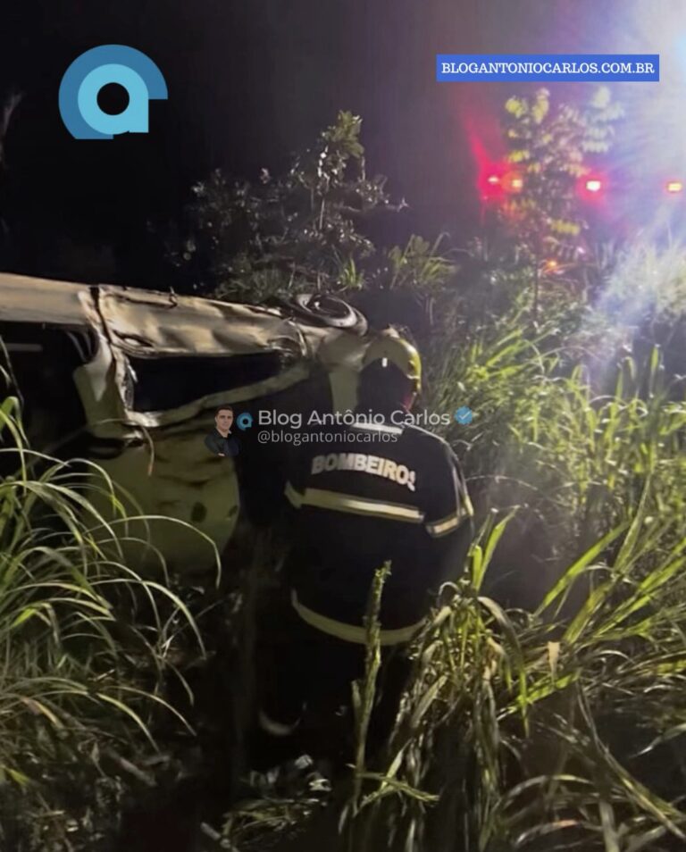 Quando os bombeiros chegaram ao local, constataram que o condutor havia sido arremessado para fora do veículo durante o capotamento. Ele foi encontrado caído no chão, nas proximidades do automóvel.