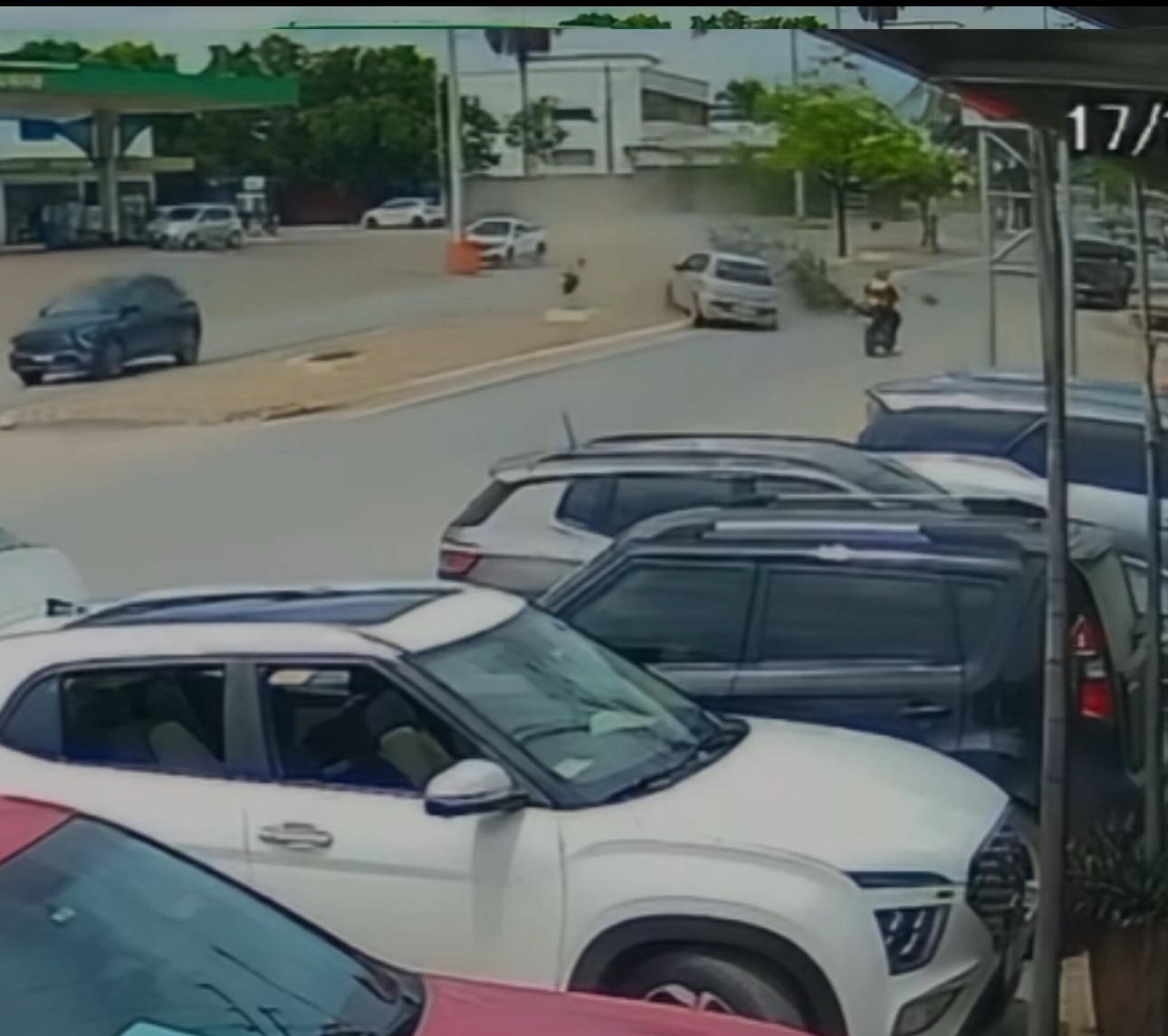 Apesar do susto e dos danos provocados, até o momento não há confirmação de pessoas feridas. Imagens que circulam nas redes sociais mostram o condutor descendo do carro logo após o impacto, observando a situação e, em seguida, retornando ao veículo e deixando o local.