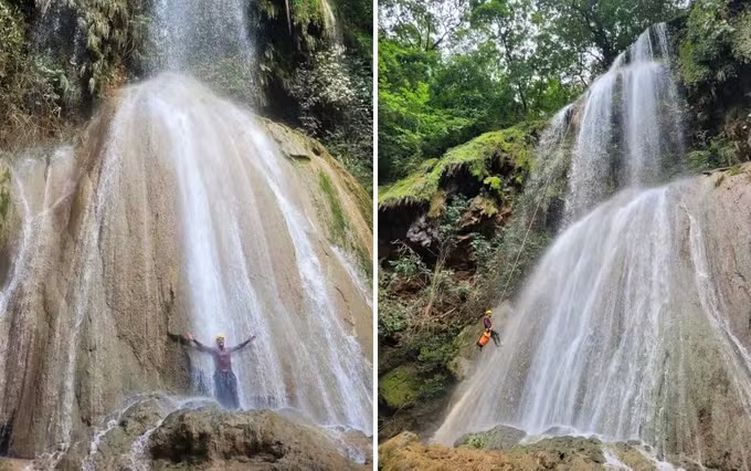 Rafael contou que o passeio consiste em descer as cinco cachoeiras utilizando técnicas de canionismo. “Nós fazemos o rapel guiado, a pessoa entra e começa a descer a cachoeira, e depois outra corda, semelhante a uma tirolesa, guia a pessoa para fora do fluxo da água e ela termina o rapel na margem”, contou Rafael.