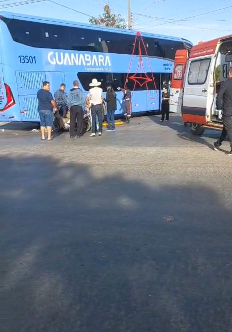 Na manhã desta segunda-feira (04/08), um acidente envolvendo um ônibus da empresa Guanabara e uma motocicleta foi registrado em Posse (GO), nas proximidades da Praça da Liberdade, na Avenida Nestor Balduíno de Souza.