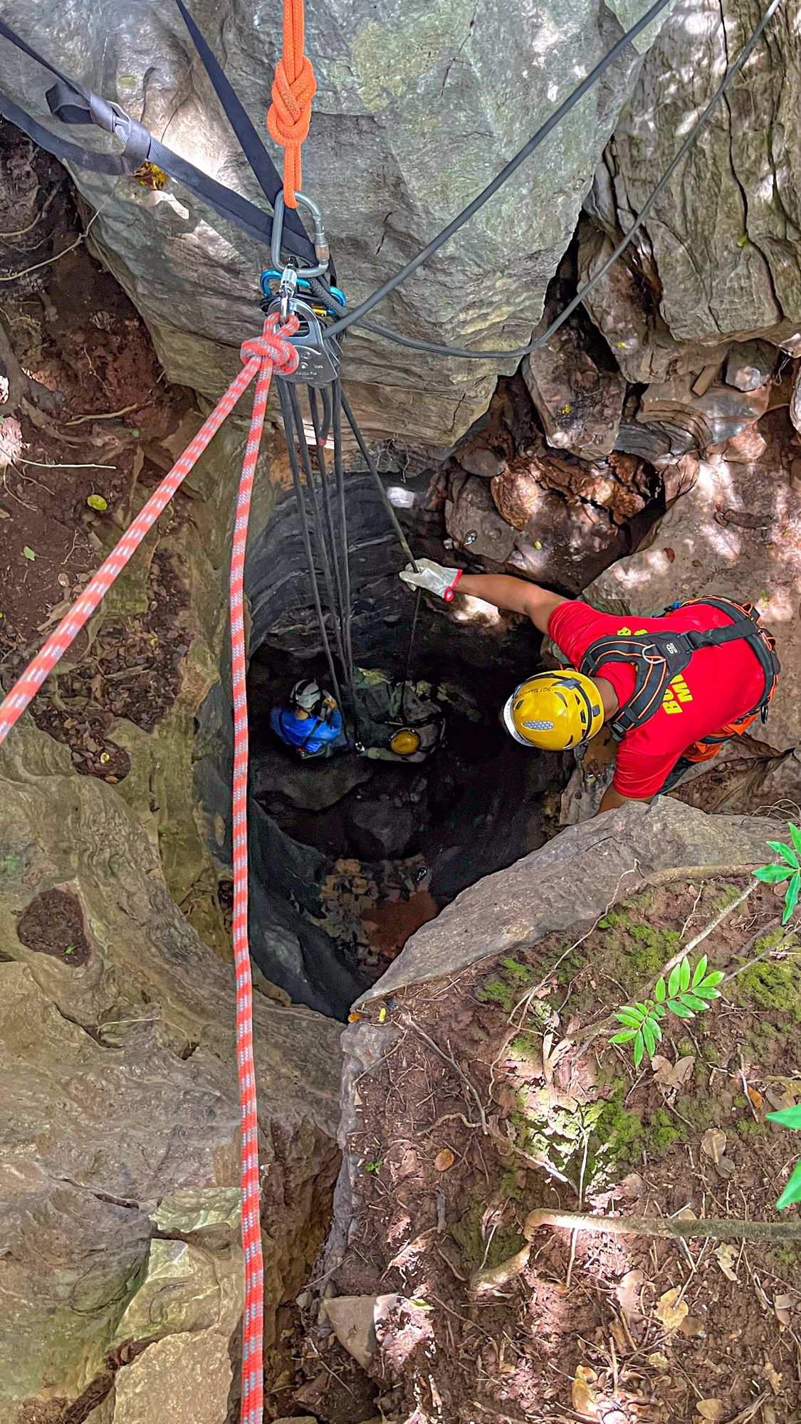 Para realizar o resgate com segurança, os bombeiros montaram um sistema de descida controlada, permitindo o acesso até o interior da caverna. Em seguida, foi feito o atendimento inicial e preparada a retirada utilizando técnicas de içamento vertical.