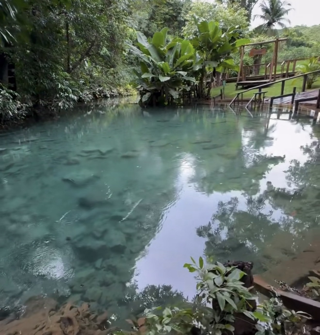 Imagens recentes mostram que o volume da água diminuiu e as áreas da lagoa, incluindo os pontos onde visitantes costumam permanecer, já não estão mais submersas. A água voltou a ficar limpa e transparente, indicando a estabilização do sistema natural do rio após a redução das chuvas.