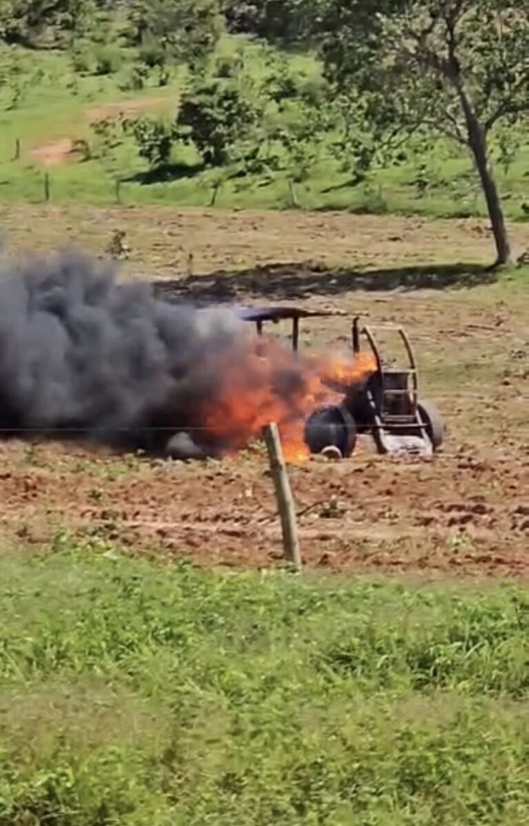 Um trator que prestava serviço na zona rural de Guarani de Goiás pegou fogo na manhã desta quarta-feira (14/01), nas proximidades da região do parque estadual de Terra Ronca.