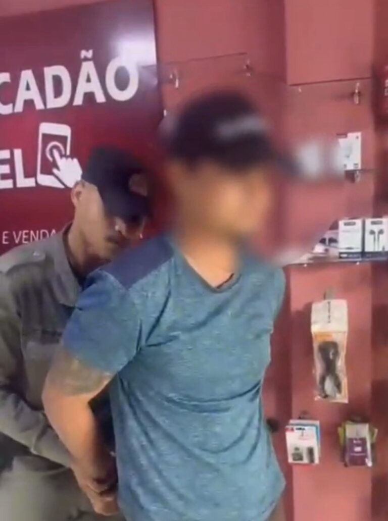 A Polícia Militar realizou a abordagem do suspeito ainda dentro da loja. Por medida de segurança, foi necessário o uso de algemas, conforme prevê a legislação vigente. O celular foi recuperado e as partes envolvidas foram encaminhadas à Delegacia de Polícia Civil, onde o caso segue para as providências legais cabíveis.