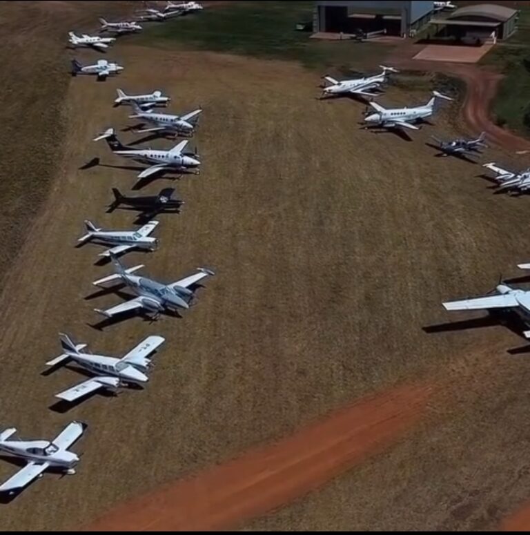 O registro, compartilhado nas redes sociais, mostrou os aviões realizando manobras de decolagem e pouso, chamando atenção para a importância da região na produção agrícola do Estado.
